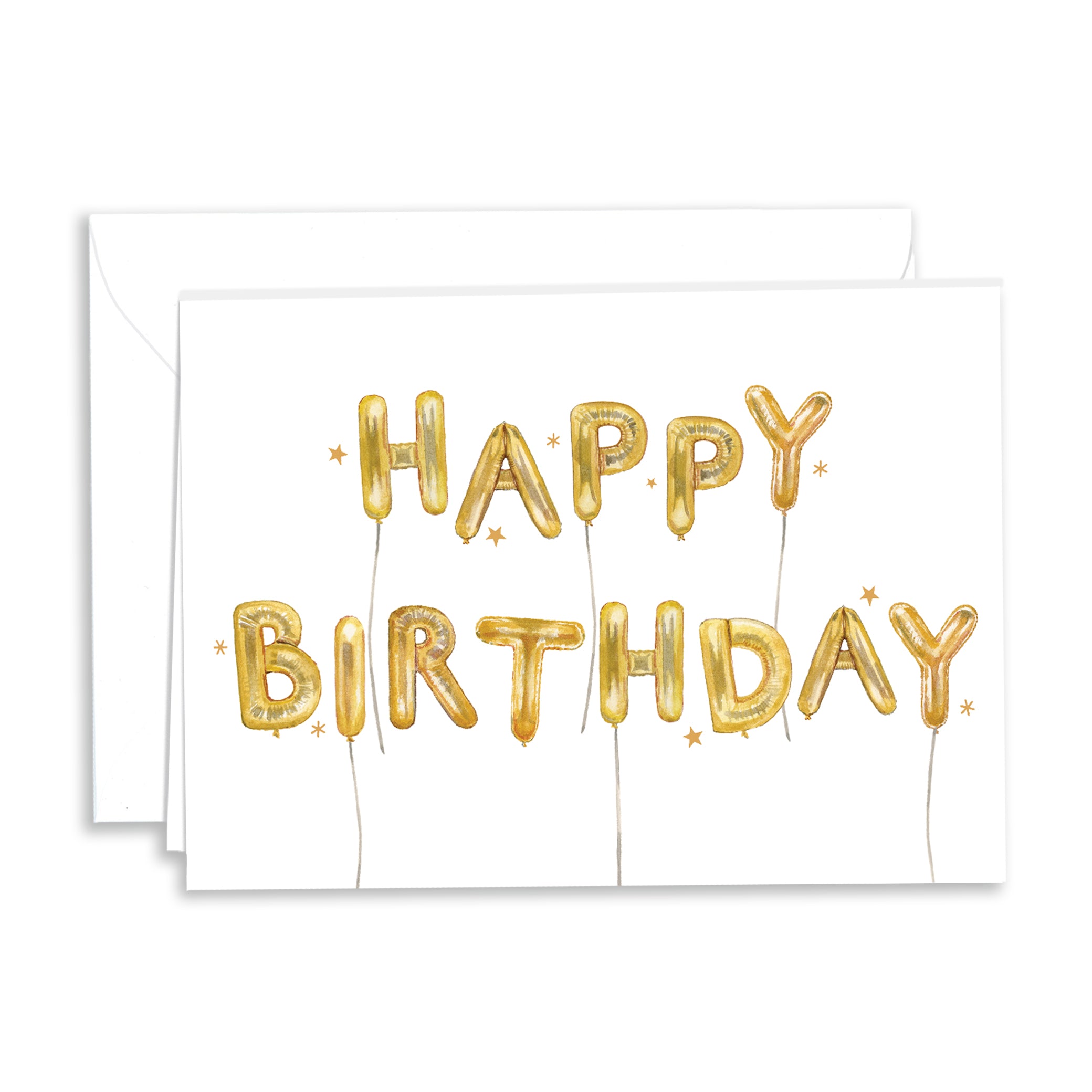 Birthday balloons from The Letter Nest! These "Happy Birthday" foldover cards are printed from Sally's original watercolors of gold birthday balloons.