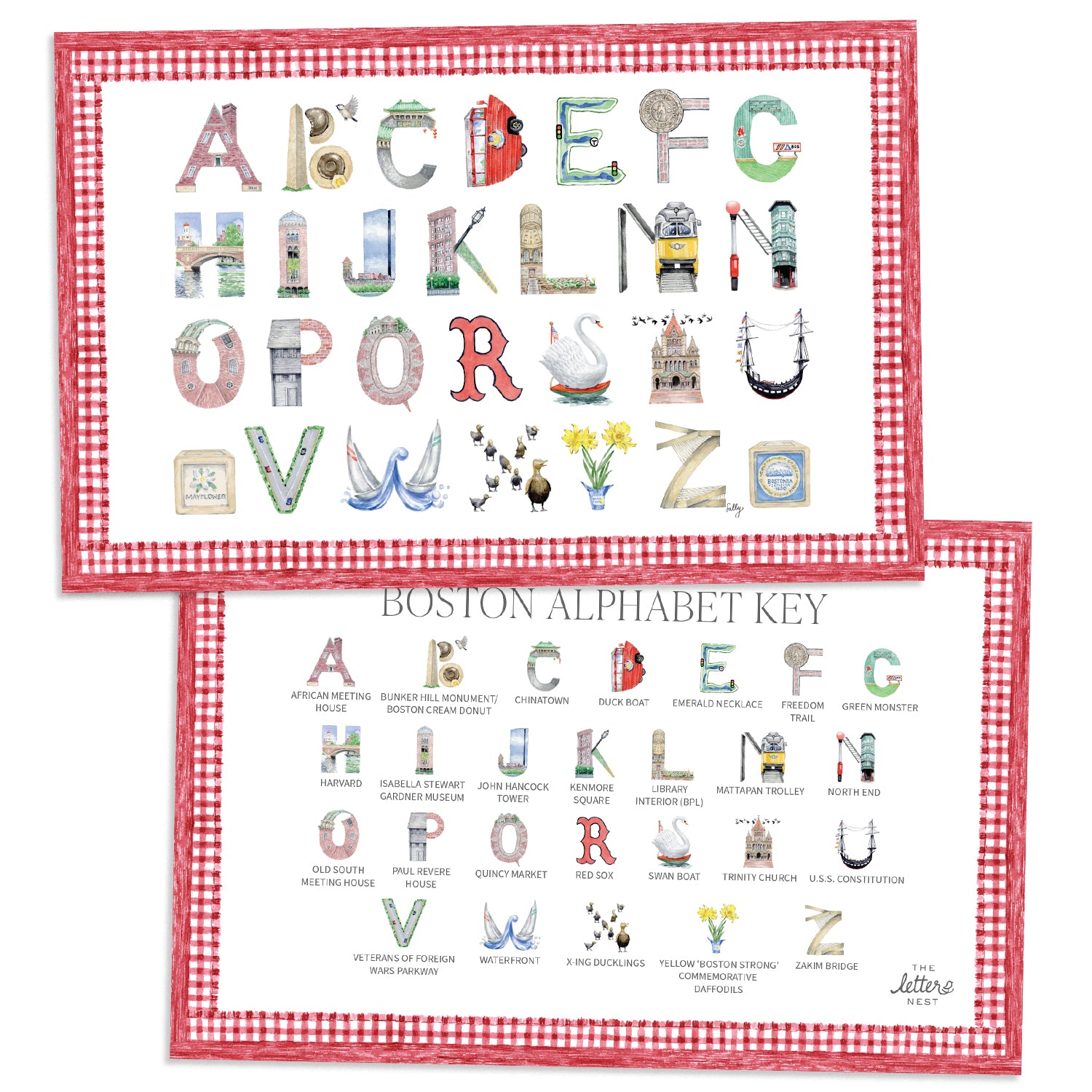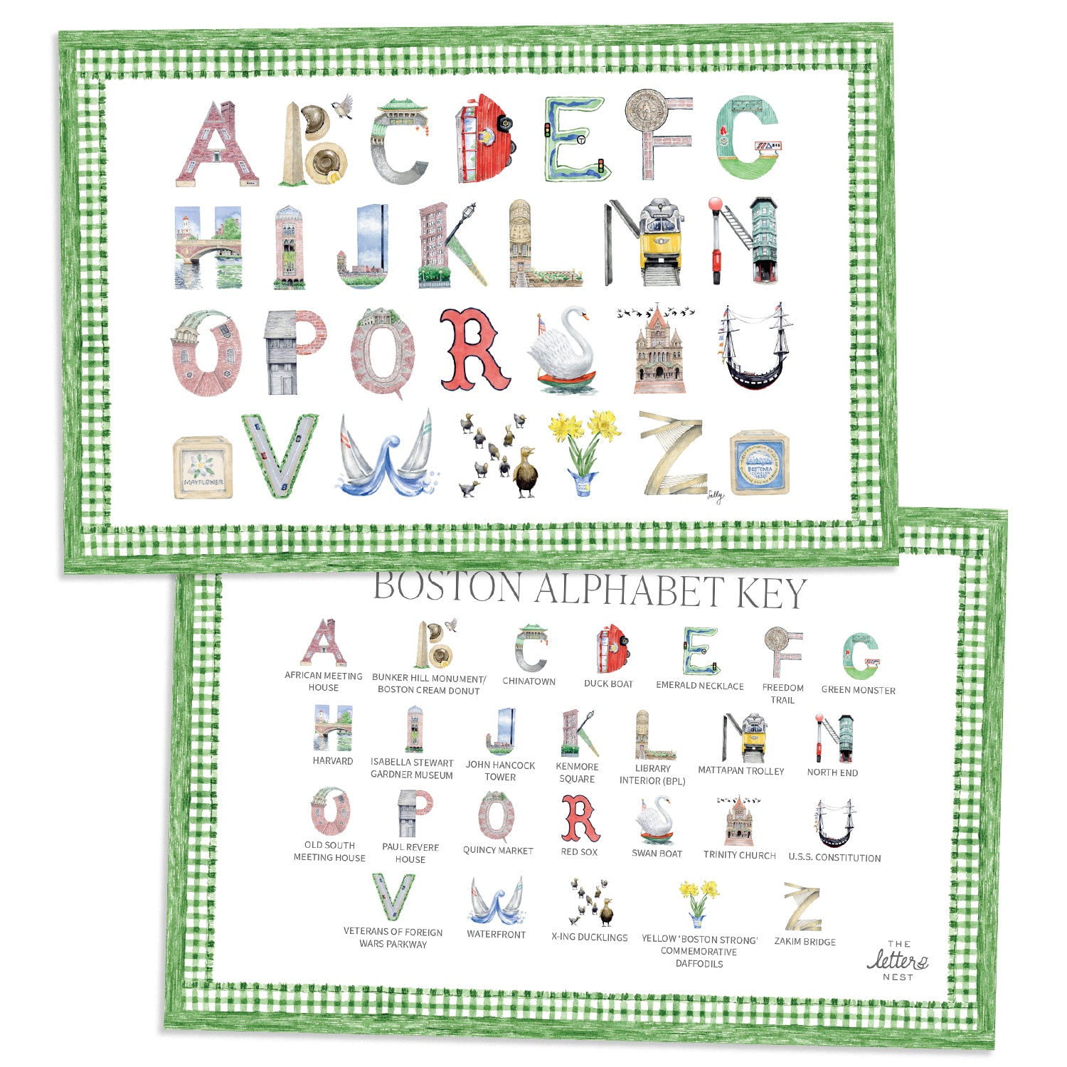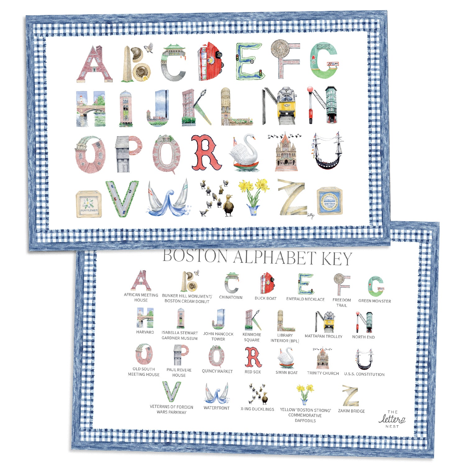 The Boston Alphabet Placemat brings our watercolor letters right to your dining table. Your little ones can learn while they eat, with the meticulously illustrated letters on one side, and the Alphabet Key on the other.