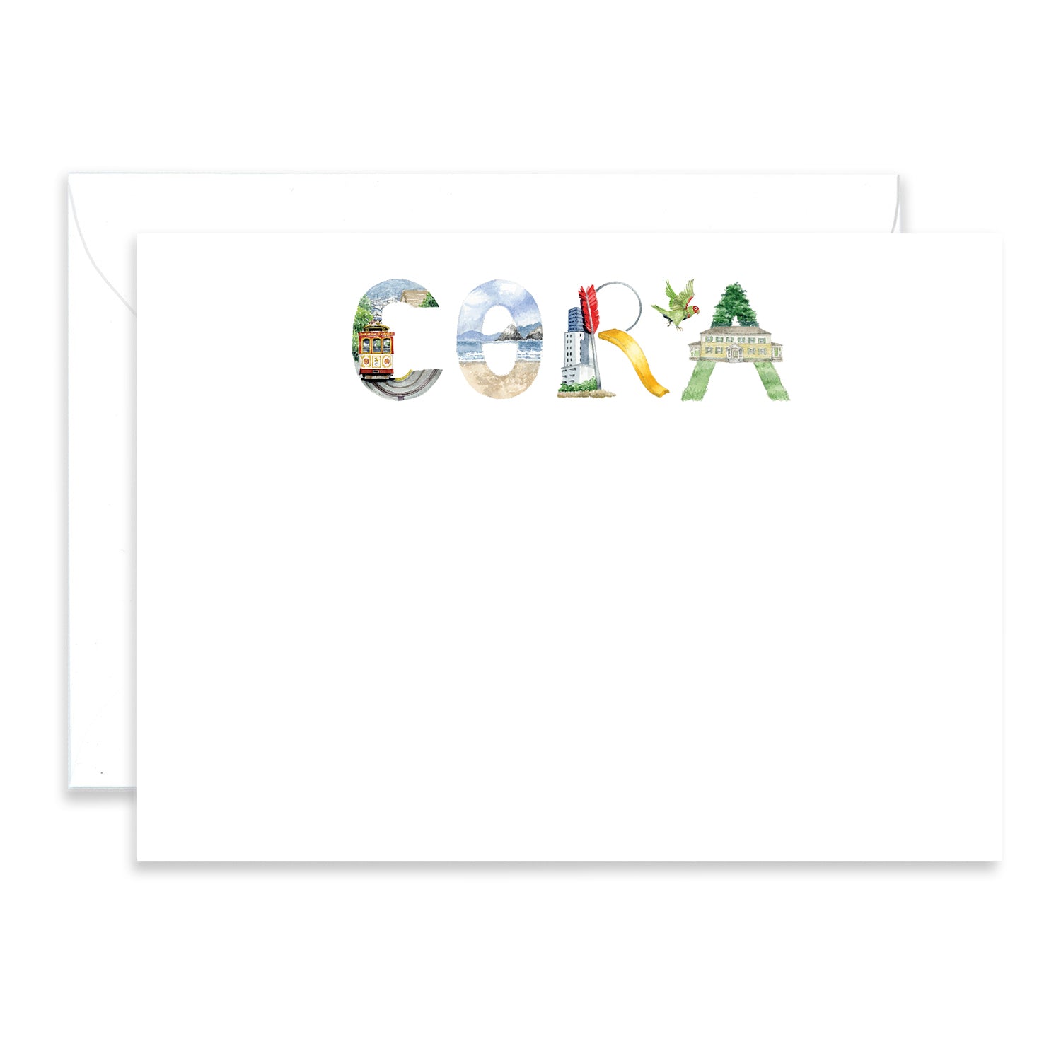 Personalize a set of San Francisco stationery, whose letters reflect the vibrance and beauty of the city. Perfect as a hostess, holiday, or birthday gift.