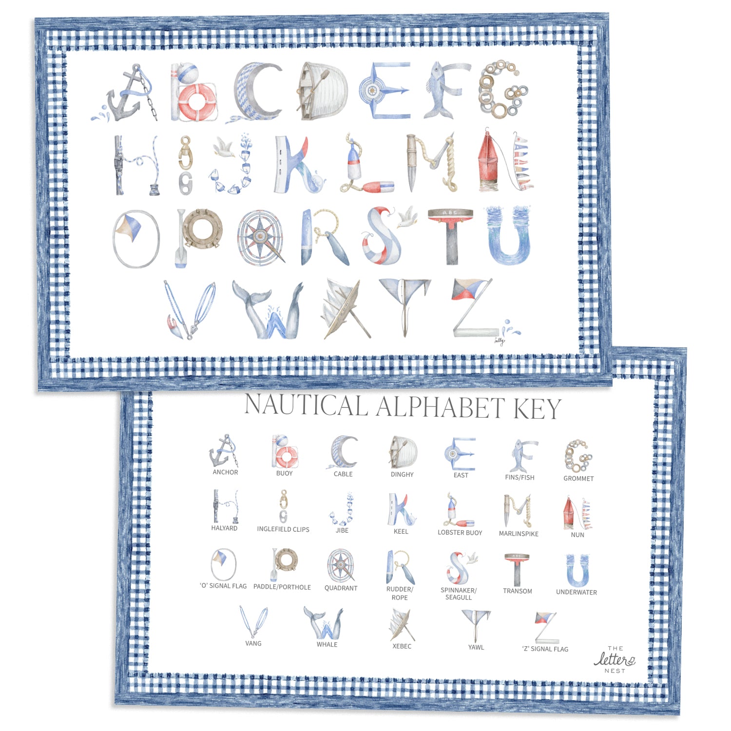 The Nautical Alphabet Placemat brings our watercolor letters right to your dining table. Your little ones can learn while they eat, with the meticulously illustrated letters on one side, and the Alphabet Key on the other.