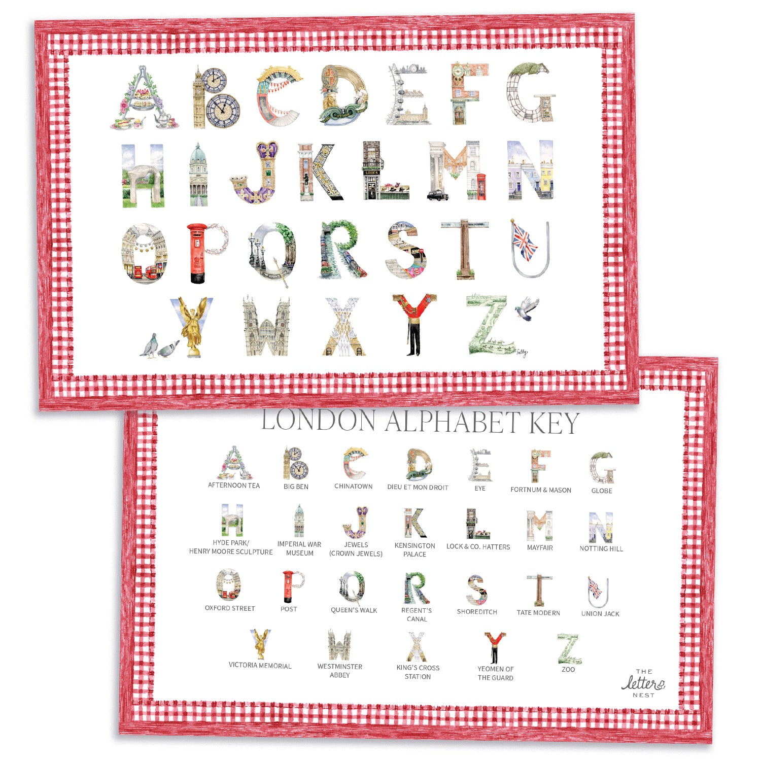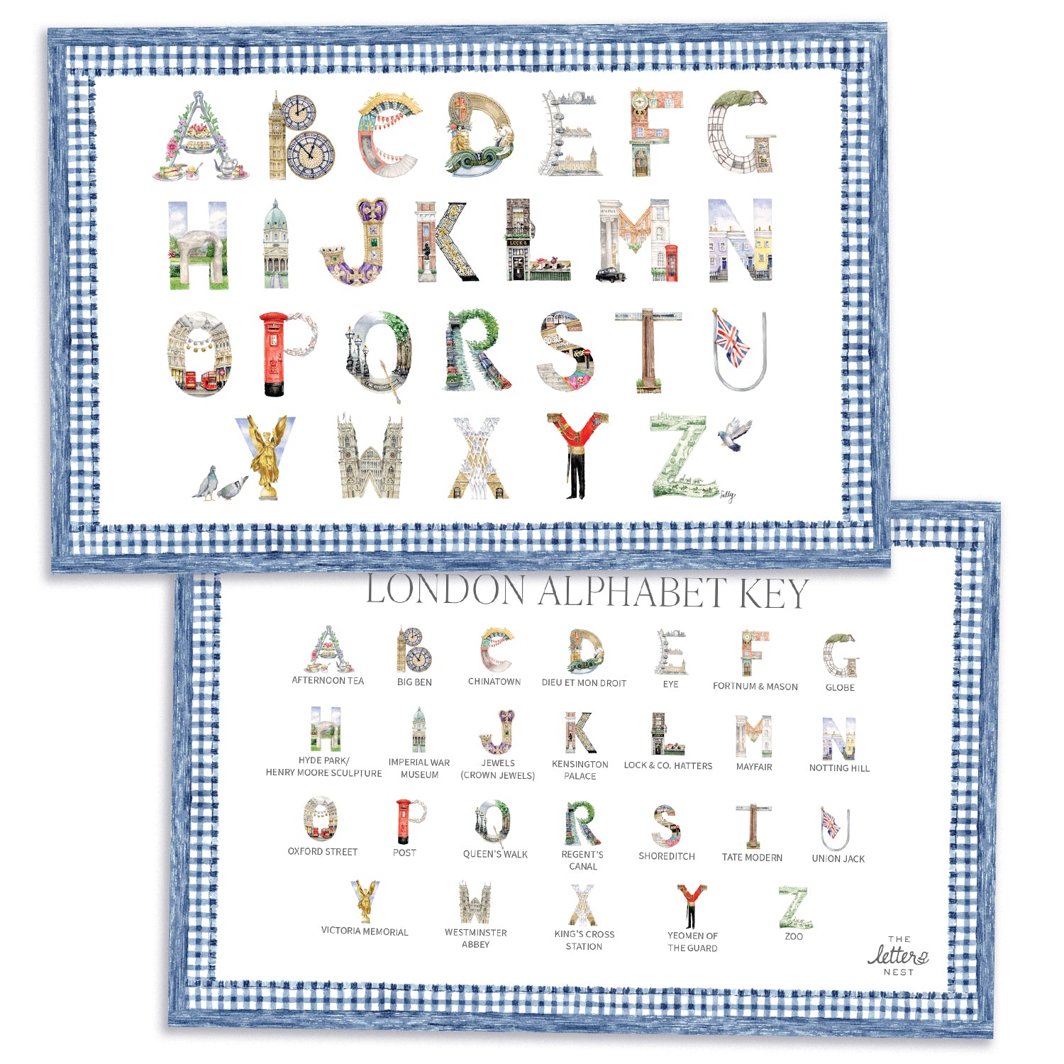 The London Alphabet Placemat brings our watercolor letters right to your dining table, from "A" for Afternoon Tea to "B" for Big Ben. Your little ones can learn while they eat, with the meticulously illustrated letters on one side, and the Alphabet Key on the other.