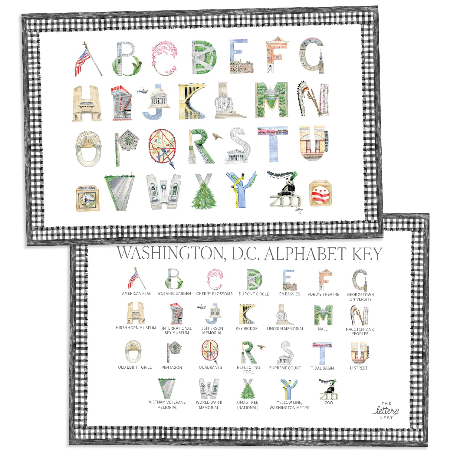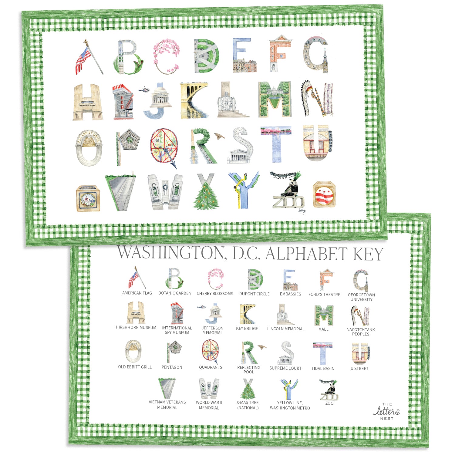 The Washington, D.C. Alphabet Placemat brings our watercolor letters right to your dining table—featuring beloved landmarks of the Capital. Your little ones can learn while they eat, with the meticulously illustrated letters on one side, and the Alphabet Key on the other.